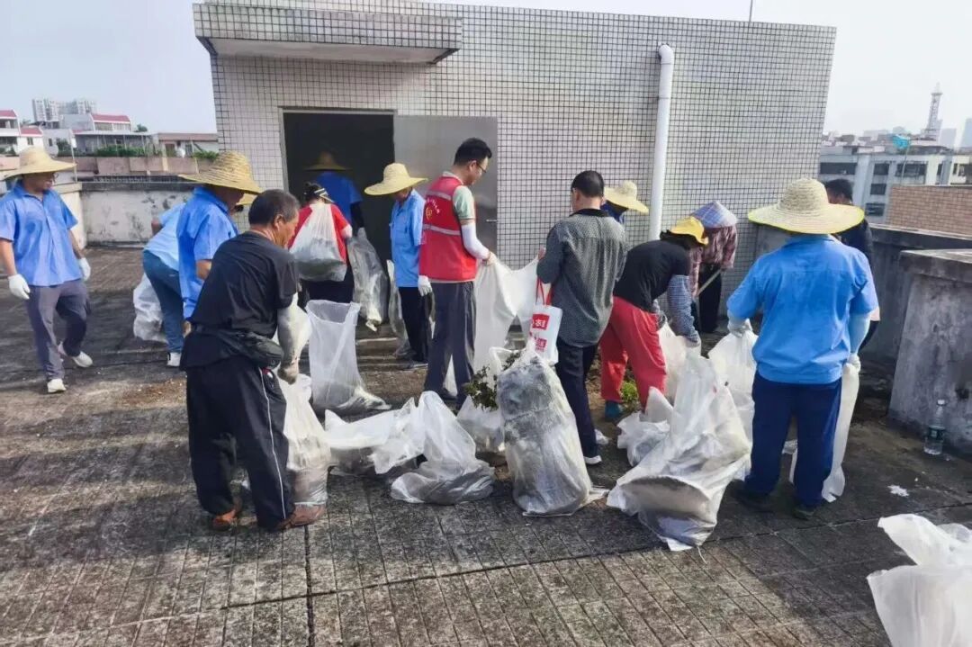 同时,在城区中山路,该公司另一支队伍逐栋清理沿街楼房天台的废弃花盆、瓶罐、泡沫箱等垃圾杂物,不放过任何一处蚊媒孳生隐患。