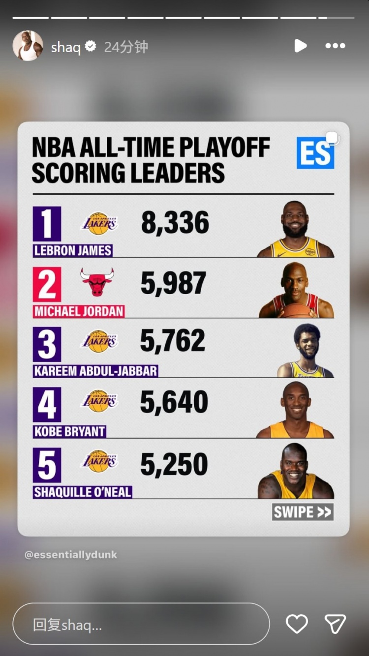 配资知名股票配资渠道 奥尼尔转发季后赛历史得分前五:詹姆斯8365独一档 乔丹5987第二 配资知名股票配资渠道 来源:创盈配资 网站:金斧子配资 日期:2026-04-25 23:53:59 查看:161